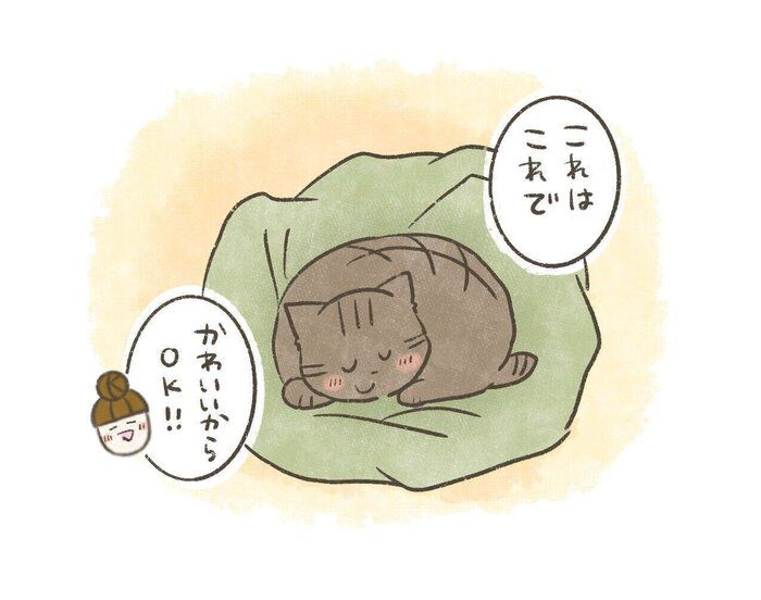 しっかり温まれるように、ドーム型のベッドを買ったおかーさん。
