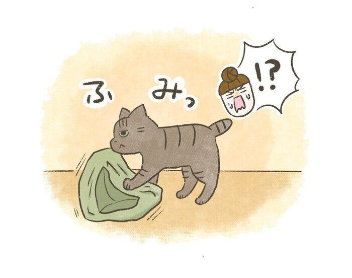 何度も踏み潰されて完成したベッドと共に飼い主の理想も踏み潰され、儚く散っていく音が聞こえた気がしました。(笑)