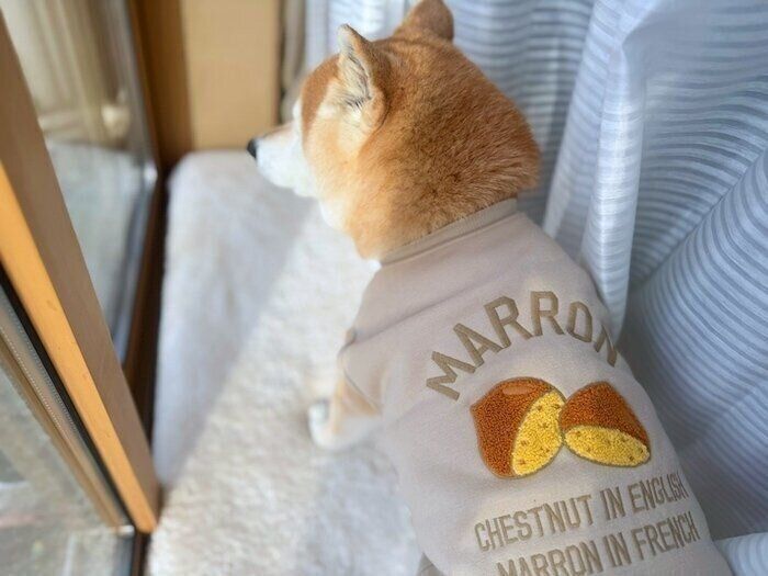 マロンという名前なので、マロン柄の服を着せるのがずっと夢でした。でも、これまで好みのデザインが見つからなかったり、可愛いと思っても小型犬用しかなかったりで。それがマロたんが15歳になってその夢が叶いました。長生きしてくれてよかったーーー!最高の誕生日プレゼントです。