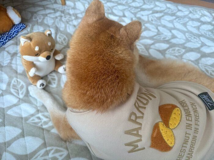 誕生日プレゼントは洋服にしようと探していたところ、インスタでフォローしている同い年の柴犬・ごん太くんが可愛い服を着ているのを見て、購入先を聞いてみたものの、すでに売り切れ。すっかり諦めていたところ「新品じゃないけれど、よかったら。マロたんに似合うから。」と、そのお洋服を譲っていただきました。