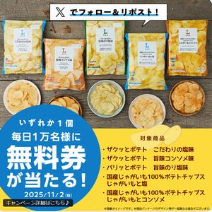 毎日1万名様に抽選で「ローソンオリジナルポテトチップス」5種類 いずれか1個無料引換券をプレゼント!