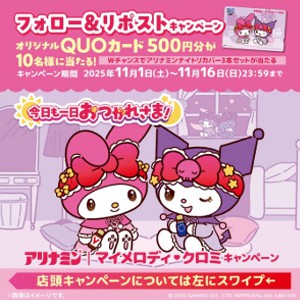 - マイメロディ&クロミQUOカード500円分 他