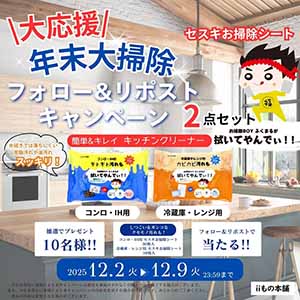 Xのフォロー&リポストで10名様にセスキお掃除シート2点セットをプレゼント!