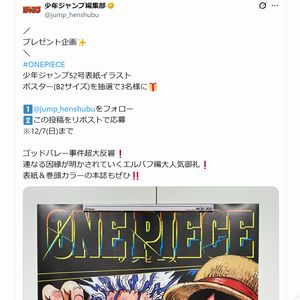 『ONEPIECE』少年ジャンプ52号表紙イラストポスター(B2サイズ)を3名様にプレゼント。