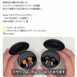 抽選で2名様にVictorフルワイヤレスイヤホン「HA-FW5000T」が当たります。