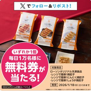 毎日1万名様(合計5万名様)に抽選でローソンオリジナル冷凍食品 レンジで簡単!焼餃子 1個無料引換券(お持ち帰り限定)をプレゼント!