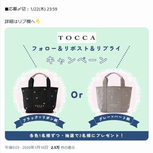 TOCCA (トッカ)の人気キャンバストートが抽選で2名様に当たる!