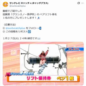番組でご紹介した 滋賀県「グランスノー奥伊吹」 ペアリフト券を1名様にプレゼント!