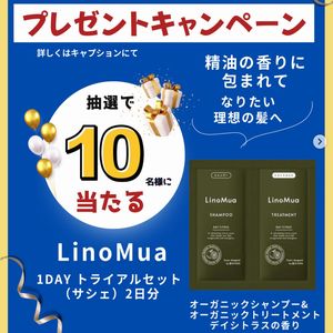 抽選で10名様にLinoMua 1DAYトライアルセット(サシェ)2個をプレゼント。