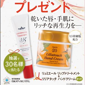 リュミエールリップトリートメント & リリアタッチハンドクリームが当たります!