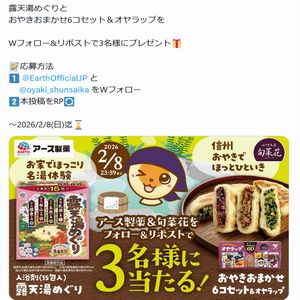 Wフォロー&リポストで3名様に露天湯めぐり+おやきおまかせ6コセット+オヤラップをプレゼント!