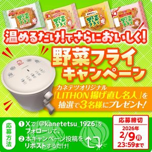 抽選で3名様にカネテツオリジナル「LITHON 揚げ直し名人」をプレゼント!