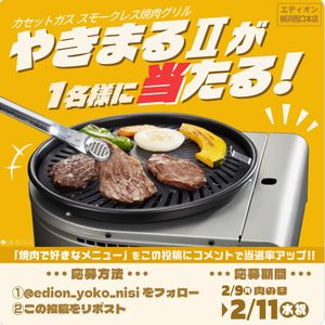 カセットガス スモークレス焼肉グリル「やきまる」を抽選で1名様にプレゼント。