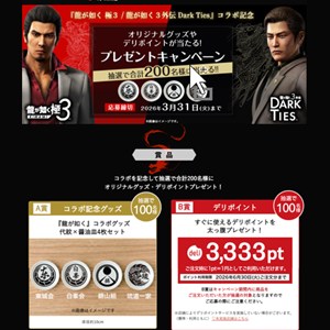 - 龍が如くコラボ醤油皿4種1セットや銀のさらで使えるポイント3,333円分