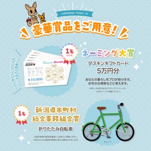 大賞に選ばれると豪華ダスキンギフトカード50,000円分や、折り畳み自転車の他、