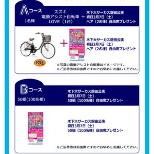 木下大サーカス磐田公演のペア招待券がセットで抽選で当たる懸賞企画です!