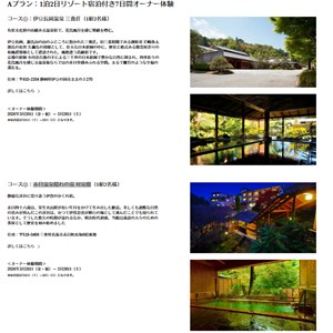 - 伊豆長岡温泉三養荘リゾート宿泊付き7日間オーナー体験 他