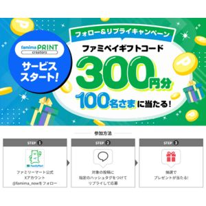 ファミペイギフトコード(300円分)が抽選で合計100名様に当たるチャンス!