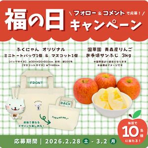 国華園 青森産りんご お手頃サンふじ 3kg+ふくにゃん オリジナルミニトートバッグ等が当たります。