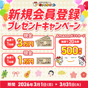 懸賞・お得生活応援サイト「チャンスイット」に新規会員登録した方の中から抽選で、22名様に「現金3万円、現金1万円、Amazonギフトカード500円分」が当たるキャンペーン実施中♪