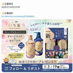 フォロー&リポストで1名様にいち髪 シャンプー&コンディショナーが当たる!