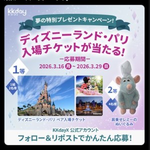 X公式アカウントをフォロー&リポストするだけの簡単応募。この懸賞に応募して、パリの夢の国を体験しよう!