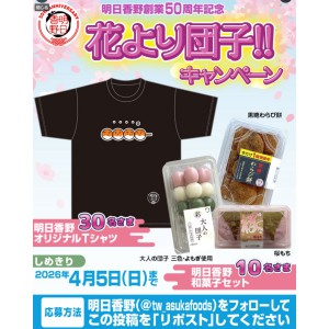 可愛いお団子Tシャツか大人の団子を含む和菓子セットが合計40名様に当たる!